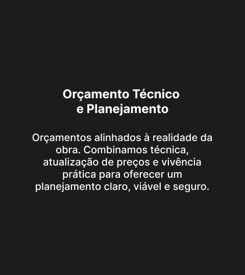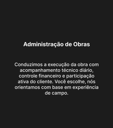 Somos uma empresa especializada em administração de obras, projetos e orçamentos para clientes que valorizam planejamento, presença técnica e confiança em cada etapa da construção.