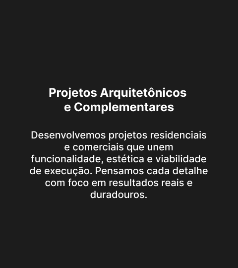 Trabalhamos com projetos personalizados, orçamento técnico e administração de obras. Nosso modelo permite que o cliente participe ativamente das decisões, com autonomia e apoio profissional em cada escolha.